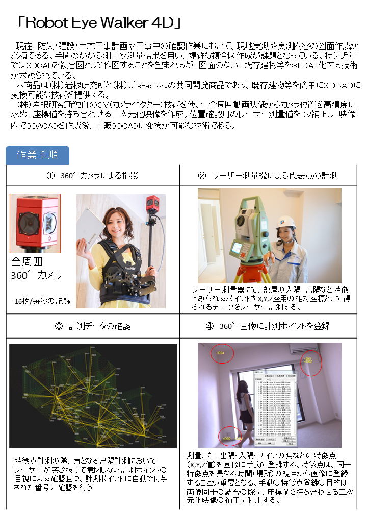(※「Robot Eye Walker 4D」とは株式会社岩根研究所と、U’sFactoryの共同開発となる商品名です)